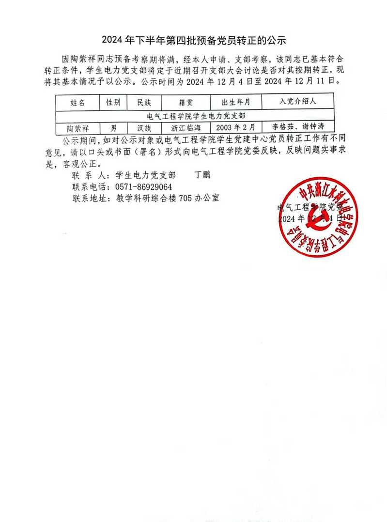 【党建】2024年下半年第四批预备党员转正的公示