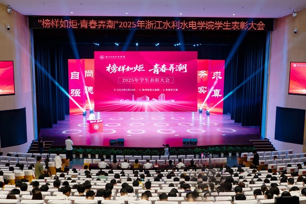 5月14日下午,学校2025年学生表彰大会暨浙江省“我是国奖生·青春榜样说”报告会在南浔校区大剧院举行。大会分自强、务实、尚德、求真四个篇章,共表彰了100余名先进个人和先进集体代表。校党委书记钱天国致辞。校长万健为“浙水红潮·弄潮青年说”宣讲团成员颁发聘书并授旗。全体校领导,有关职能部门、各二级学院党政主要负责人、学生工作负责人和师生代表参加。