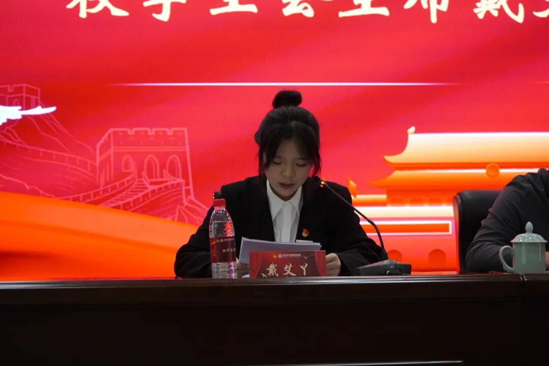 校学生会主席戴艾丫同学首先祝贺了大会召开,并肯定了经管学院学生会过去一年在思想引领和活动组织方面的成绩。同时提出三点希望:推动创新精神融入实践、加强理论武装、优化学生会组织运行机制。