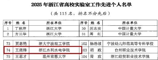 近日,浙江省高等教育学会实验室工作分会发布《关于公布2025年浙江省高校实验室工作先进评选结果的通知》及《关于公布2024-2025年浙江省高校实验室工作研究成果奖获奖名单的通知》,我校王煜烽老师获评2025年浙江省高校实验室工作“先进个人”,陶来华老师主持的《“理、实、赛融合”与“通、专、创并举”的工程训练教学体系构建与创新人才培养实践》和林盛老师主持的《地方高校实验技术队伍建设研究》获2024-2025年浙江省高校实验室工作研究成果奖二等奖。