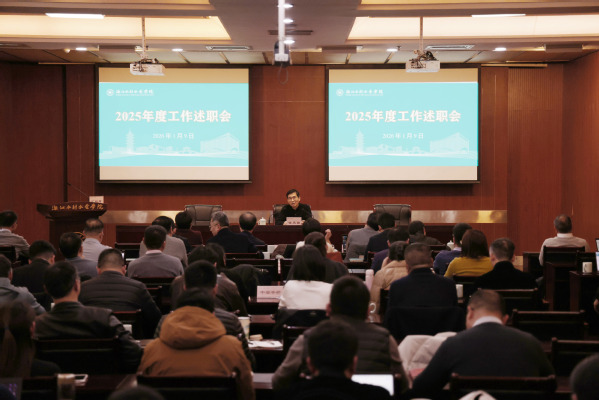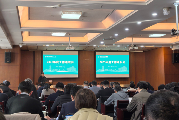 1月9日,学校2025年度部门(单位)工作述职会在钱塘校区召开。校党委书记钱天国主持会议。全体校领导、中层干部及师生代表参加会议。