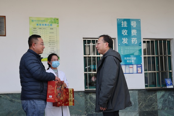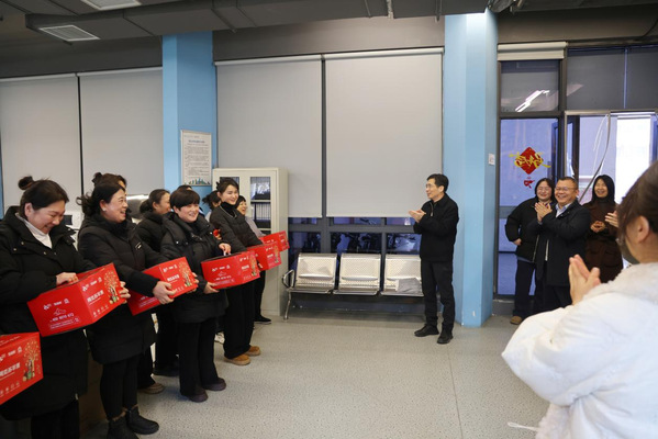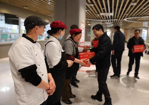 校领导一行深入两校区门岗、校园110指挥中心、学生公寓、物业服务中心、校医院、校园施工现场及食堂等地。每到一处,领导们都与在岗员工亲切交谈,详细询问值班值守安排、日常工作运转及应急保障情况,感谢大家寒来暑往默默守护校园安全、提供温馨服务,并送上慰问品与新春祝福。