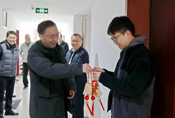 在学生公寓走访时,校领导看望了留校的留学生与联培研究生,关心了解同学们假期安排、科研项目进度及生活保障需求等情况,向留学生热情介绍中国传统年俗文化,鼓励联培研究生潜心钻研,主动加强与导师、学校的沟通,合理规划假期时间,努力锤炼本领、实现成长。
