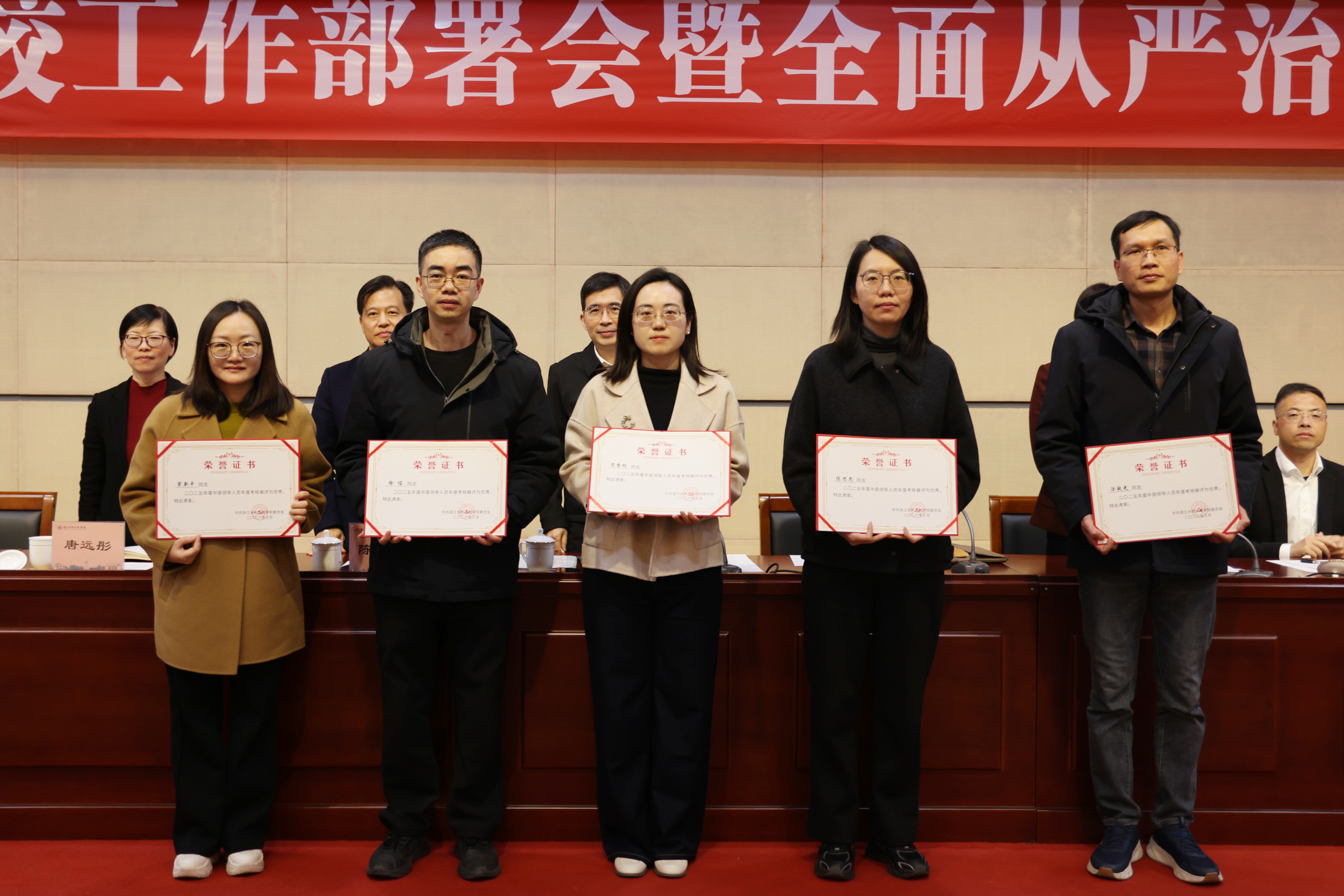 徐旭东指出,2025年学校以“贺信精神”为根本遵循,自觉扛起管党治党政治责任,扎实开展深入贯彻中央八项规定精神学习教育,纵深推进全面从严治党和“清廉水院”建设,政治生态持续向善向好。学校纪委坚定不移推进正风肃纪反腐,为学校各项事业高质量有特色发展提供了坚强纪律保障。他强调,学校各部门、各单位和广大党员干部要做实政治监督,聚焦“两个维护”严明政治纪律,聚焦学校发展大局压实政治责任,聚焦巡视巡察整改做实监督。要坚持严的基调,持续强化不敢腐的高压态势,筑牢不能腐的防线,涵养不想腐的自律自觉,完善“三不腐”协同机制。要强化正风肃纪,持续完善作风建设长效机制,持续整治“四风”与师生身边的不正之风。要以“两个责任”抓纲带目,协助党委全面压实清廉建设责任,全面深化清廉单元建设,强化数智赋能清廉建设。要持续推进“三化”建设,强化政治建设、能力建设、作风建设、廉洁建设,打造全面过硬的纪检监察铁军,为学校“十五五”开好局起好步、决胜“申硕”攻坚提供坚强纪律保障。